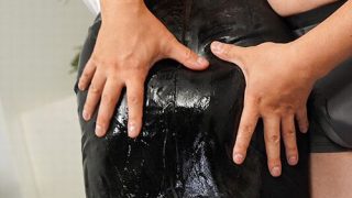 服射 スカートで布コキする革ジャン美女!黒い生地とブーツに精液ぶっかけ