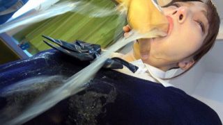 ゲロ JKのゲロが制服やジャージを汚す!喉マンコの刺激で嘔吐するマゾ雌
